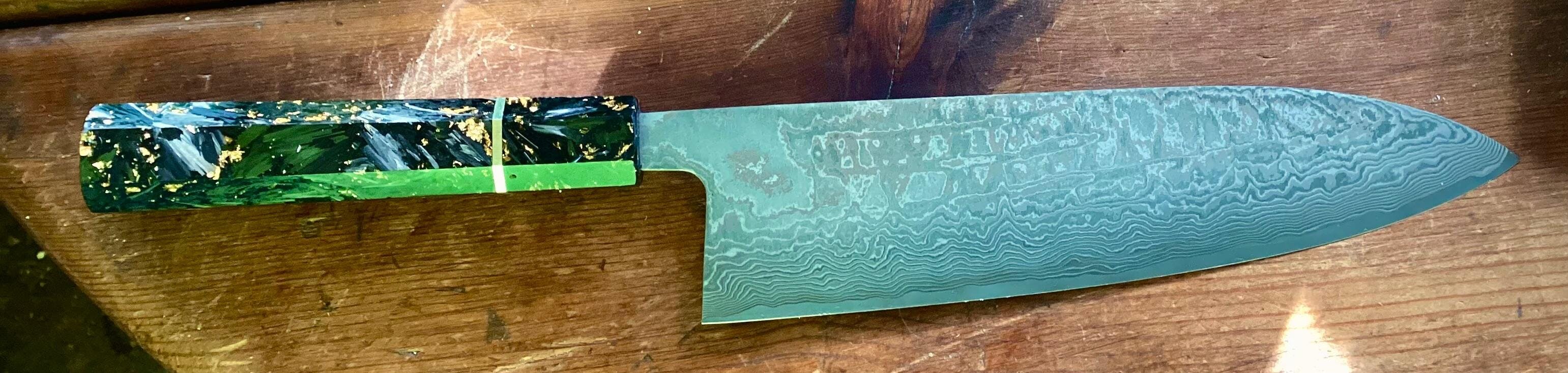 Knife is so dang beautiful it's kinda hard to use. But definitely a show stopper in dinner parties! Gonna have the handle done by letshandlethis
