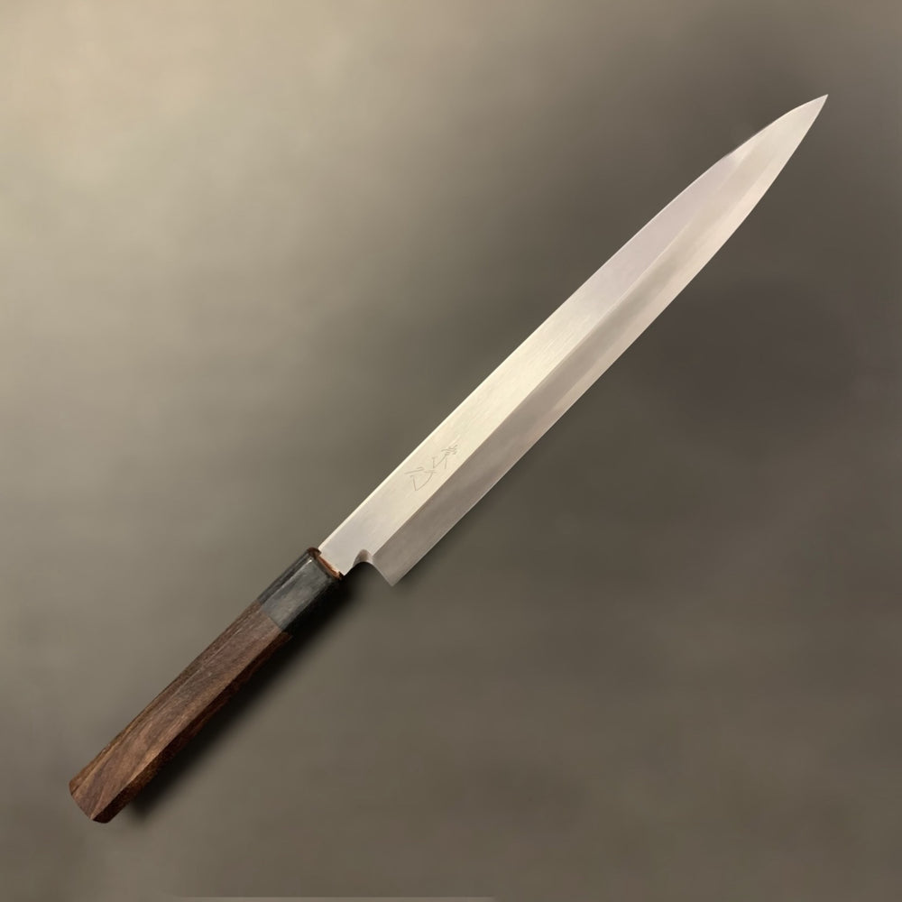 Engineered as a laser-keen sashimi specialist, the 270mm length provides the ideal draw for clean, uninterrupted cuts through tuna, salmon, and delicate proteins. SRS-13 powder stainless rivals SG2/R2 for hardness and wear resistance, so it holds a screaming edge through long prep sessions. A wa-octagonal rosewood handle offers neutral indexing and balance for confident tip control. For best results, use a gentle pull cut and let the blade’s weight glide through the fish.
